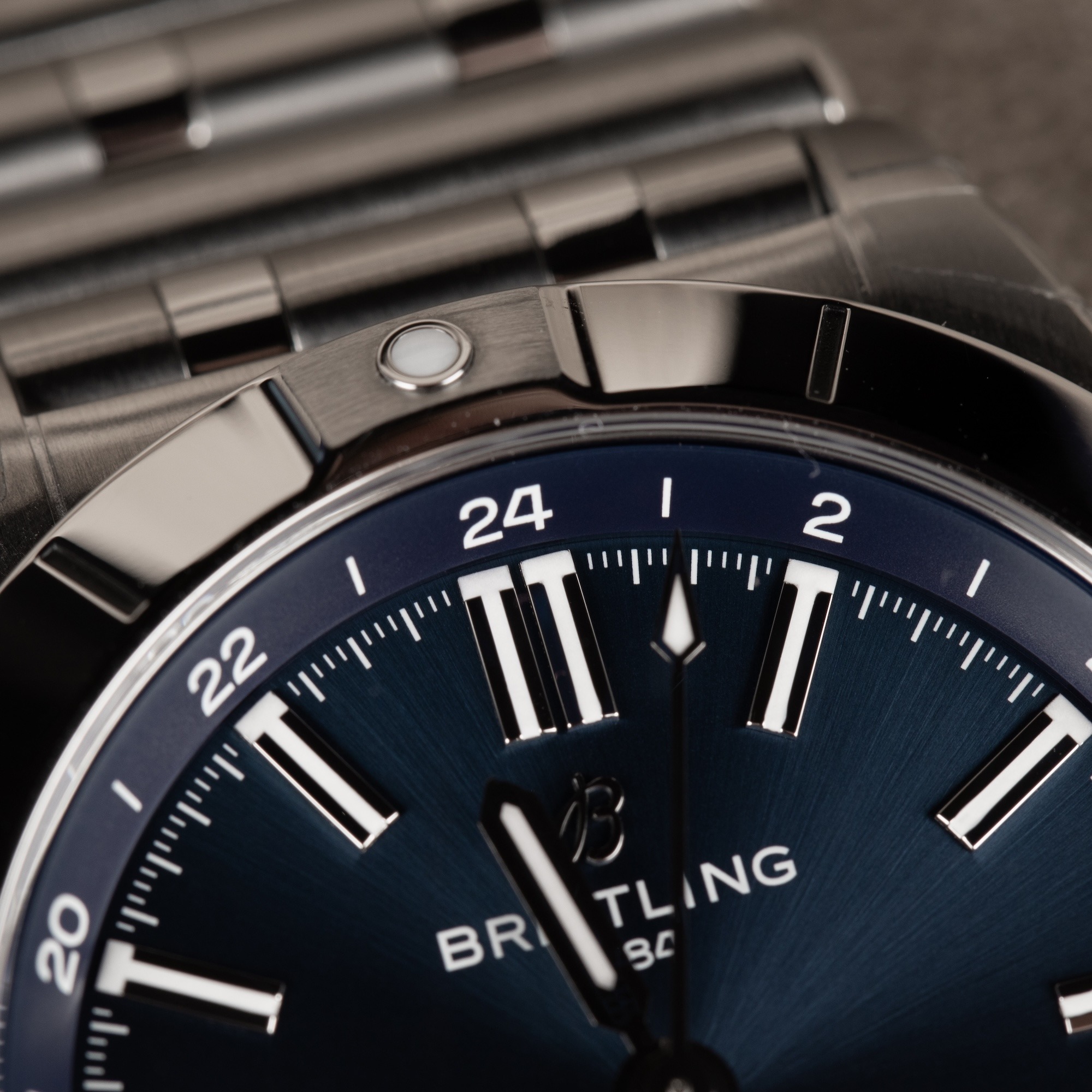 At its core, the COSC-certified Breitling 32 movement delivers exceptional accuracy with a high-frequency vibration of 28,800 v.p.h. The blue dial is highlighted by a vibrant GMT hand that provides instant legibility of a second timezone. Its 11.77mm thickness allows it to slip easily under a shirt cuff, while the unidirectional ratcheted bezel and 20 bar water resistance ensure it remains a true tool watch at heart. Whether you are navigating global timezones or enjoying the coastline, the A32398 offers the ultimate blend of style, substance, and Swiss horological excellence.