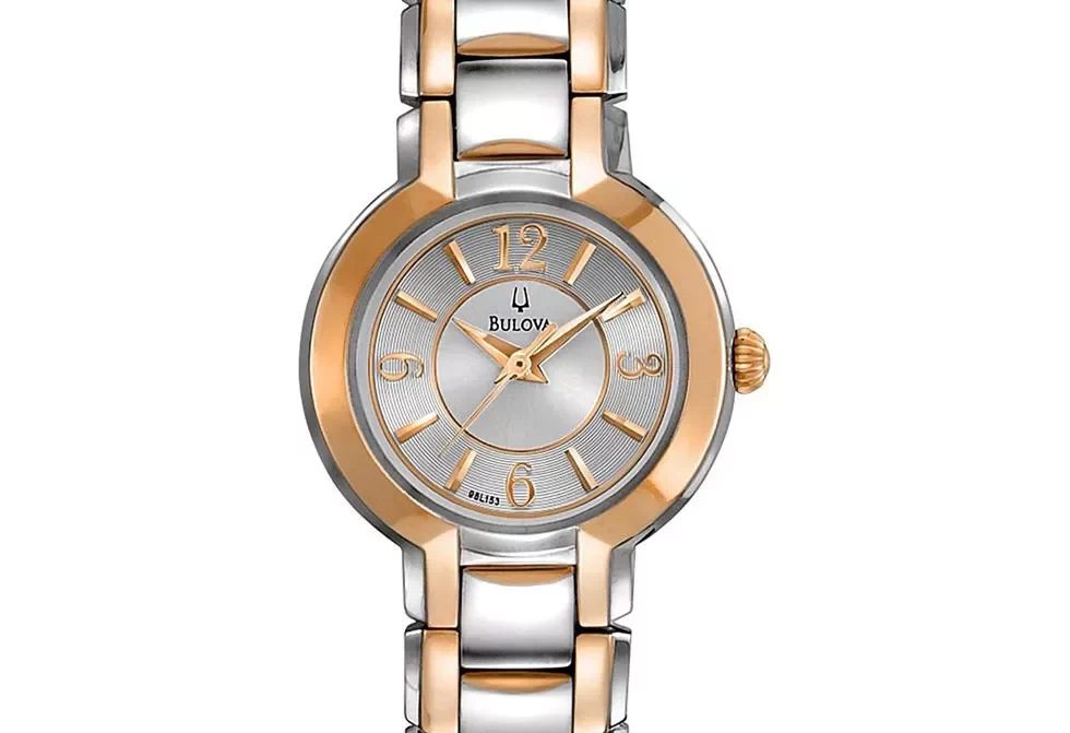 The Bulova Classic 98L153 features a 27 mm stainless steel case, silver dial, and 14mm silver band. It’s powered by Japanese quartz movement and is water-resistant.