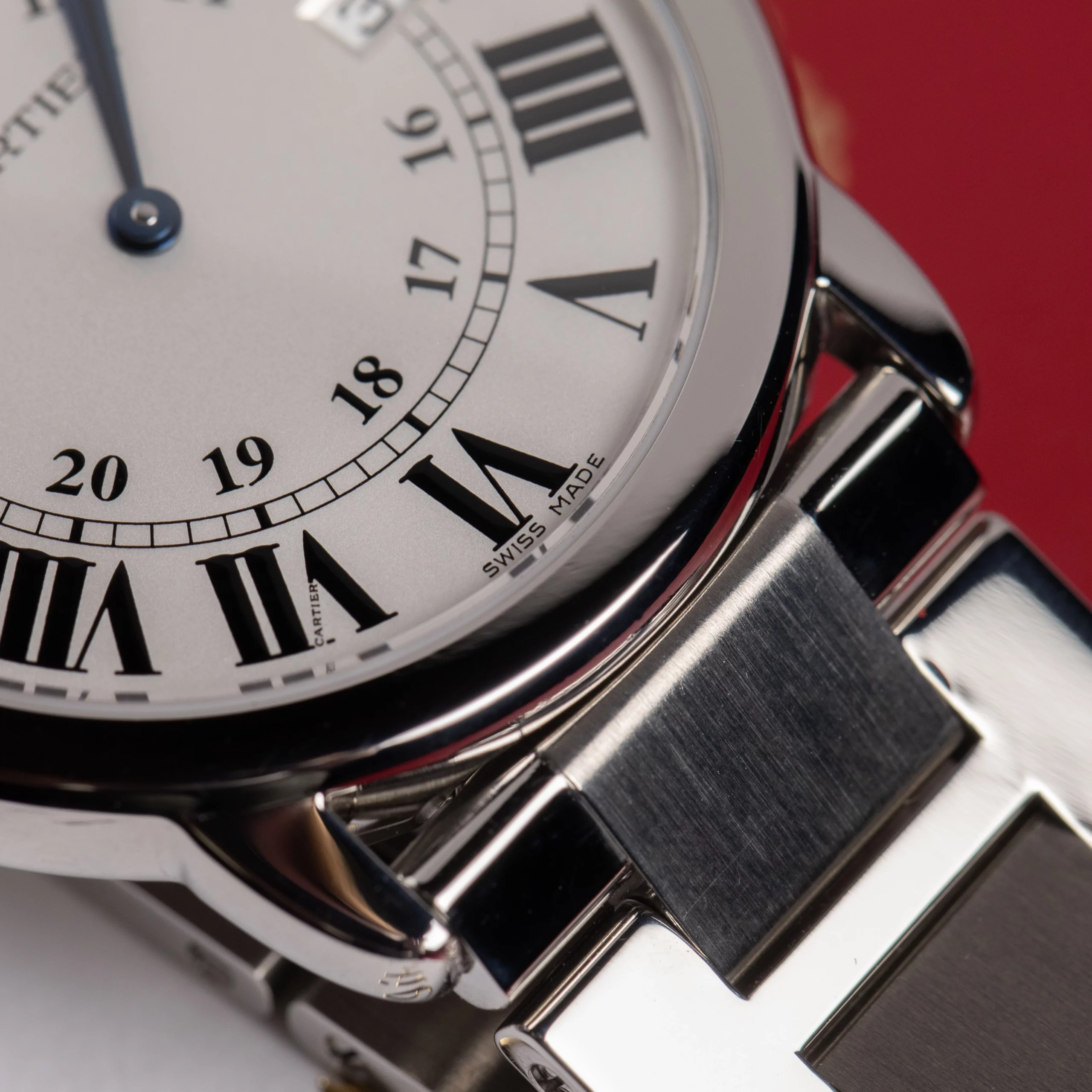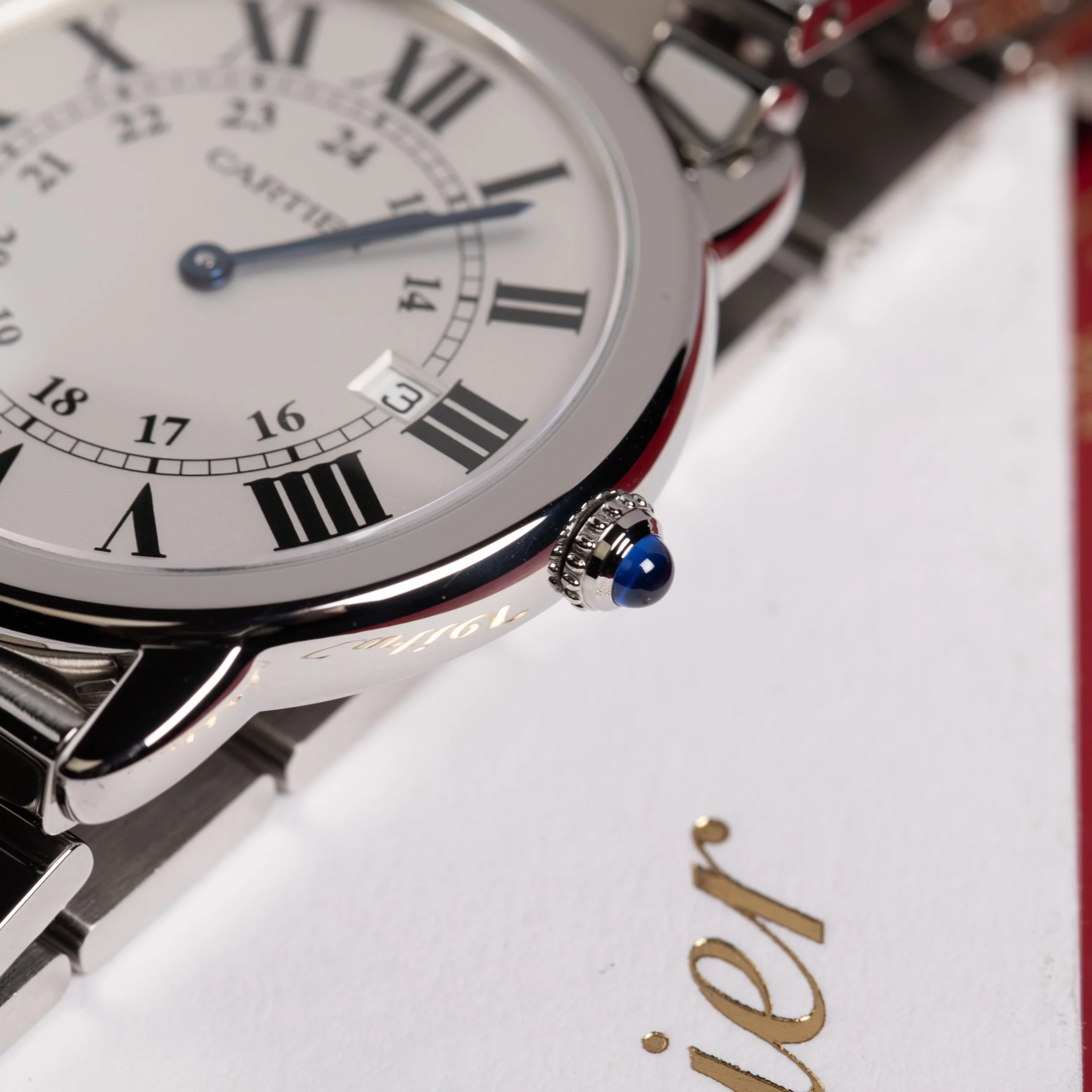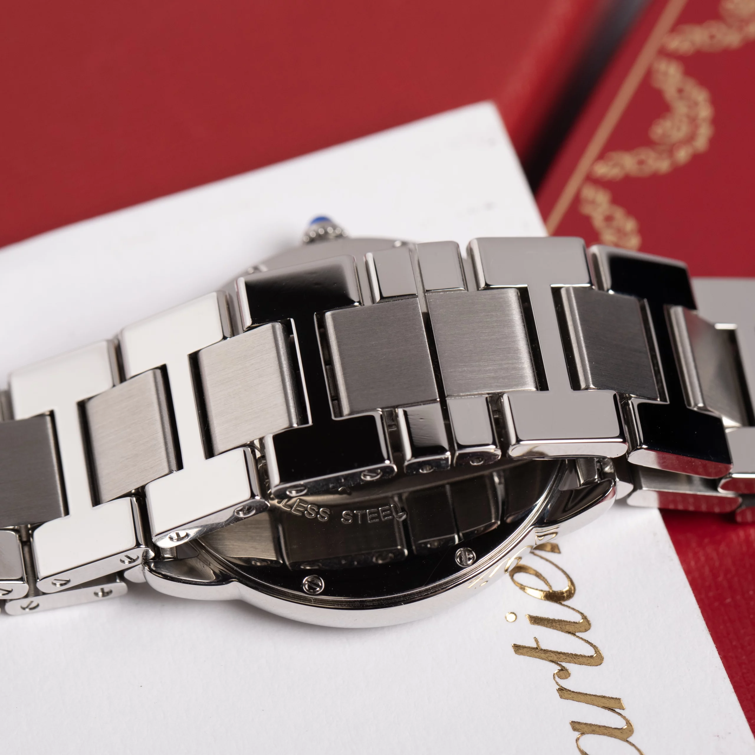 - Classic White Dial with Roman Numerals: Signature Cartier design for timeless elegance.