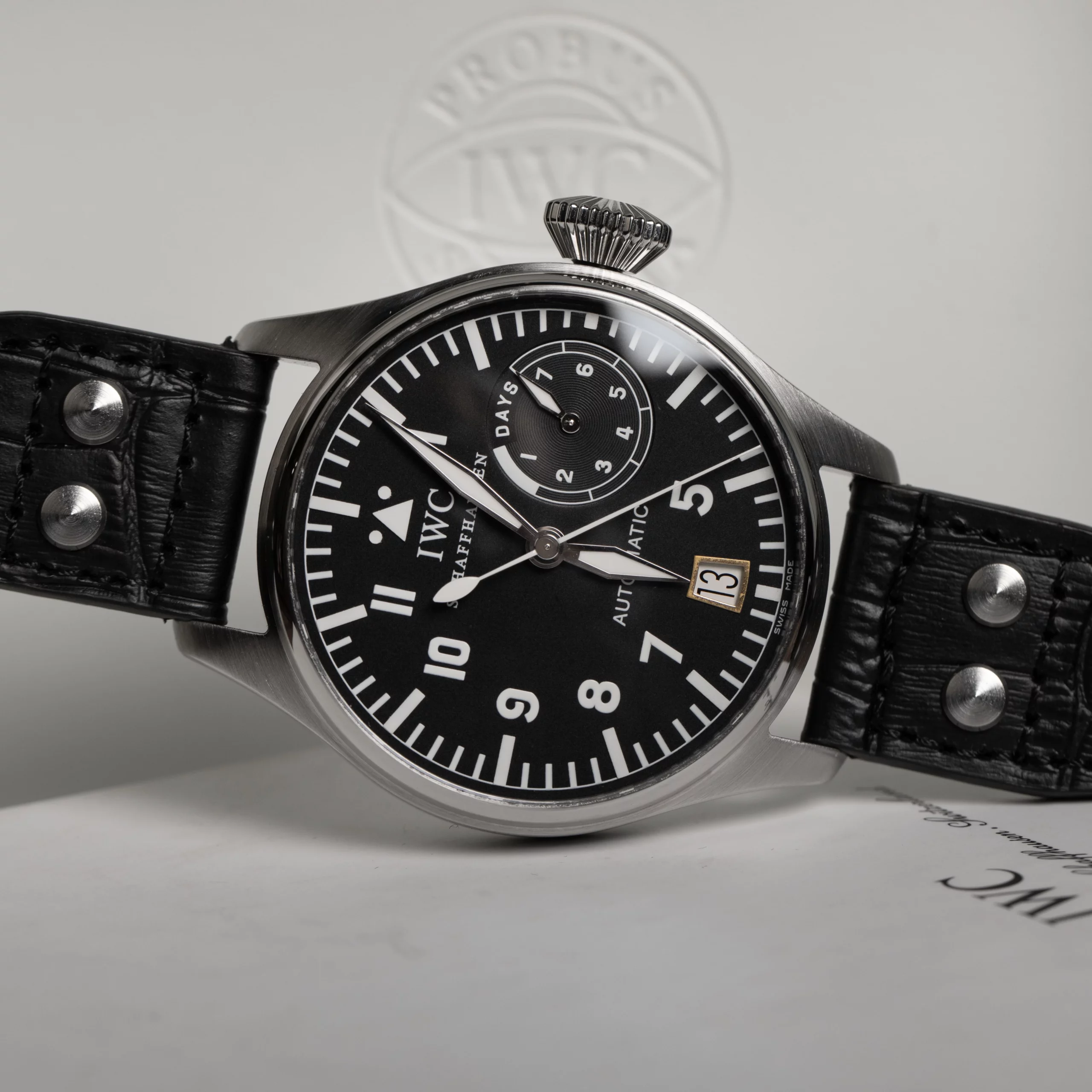 Elevate your wrist with the IWC Big Pilot IW5002. This iconic timepiece combines Swiss craftsmanship with a bold, oversized design, featuring a stainless steel case, large Arabic numerals, and a distinctive crown. Perfect for aviation enthusiasts and watch connoisseurs alike.