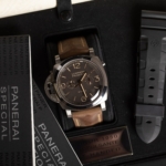 Explore the Panerai Luminor 1950 Chrono Monopulsante 8 Days Titanio PAM00579, a left-handed 47mm titanium watch with hand-wound P.2004/9 caliber offering 8-day power reserve, monopulsante chronograph, and brown sandwich dial. Ideal for collectors seeking Italian heritage and modern precision—discover its iconic design today.