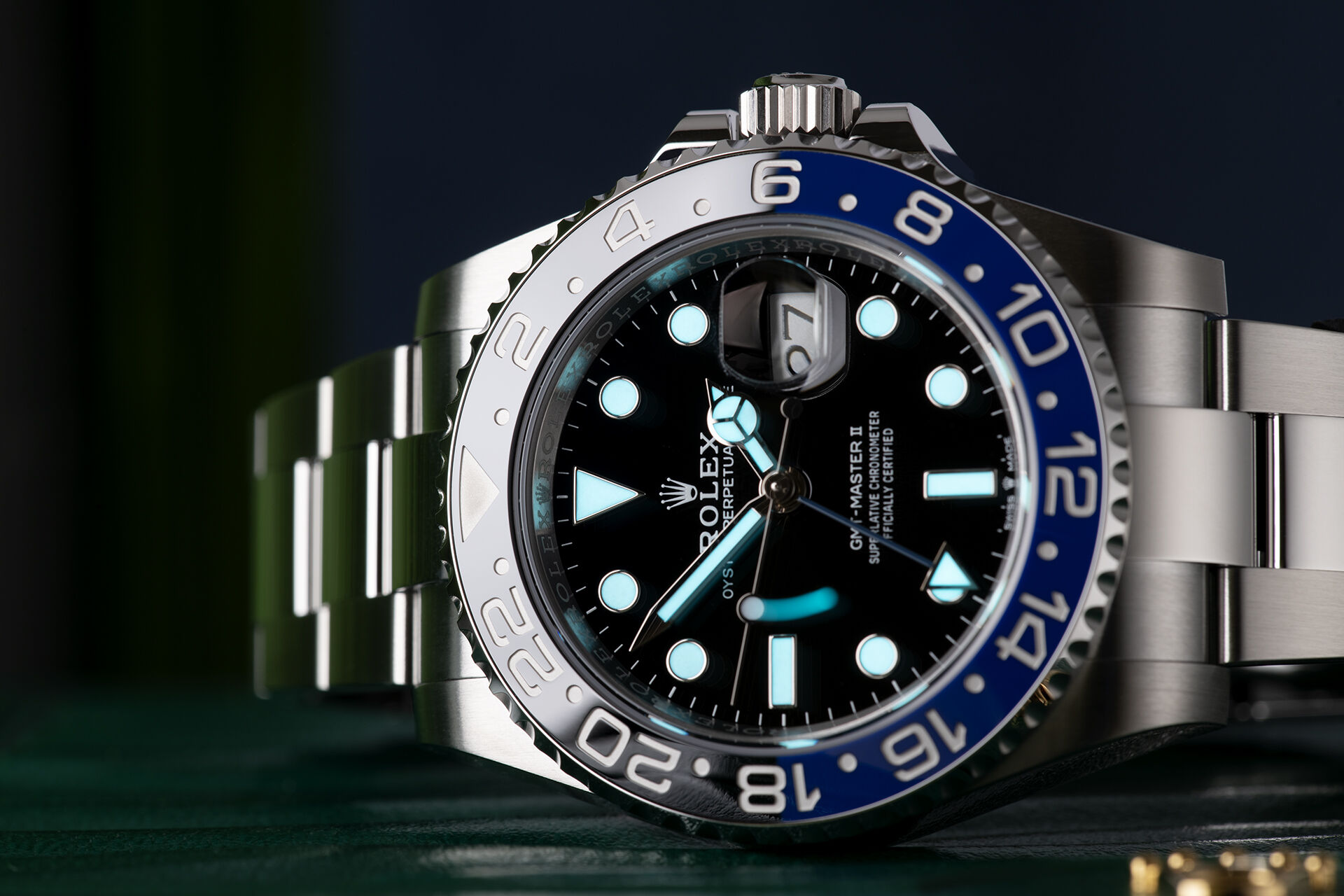 – Black & blue ceramic bezel: Iconic “Batman” Cerachrom insert is highly scratch-resistant and color-stable.