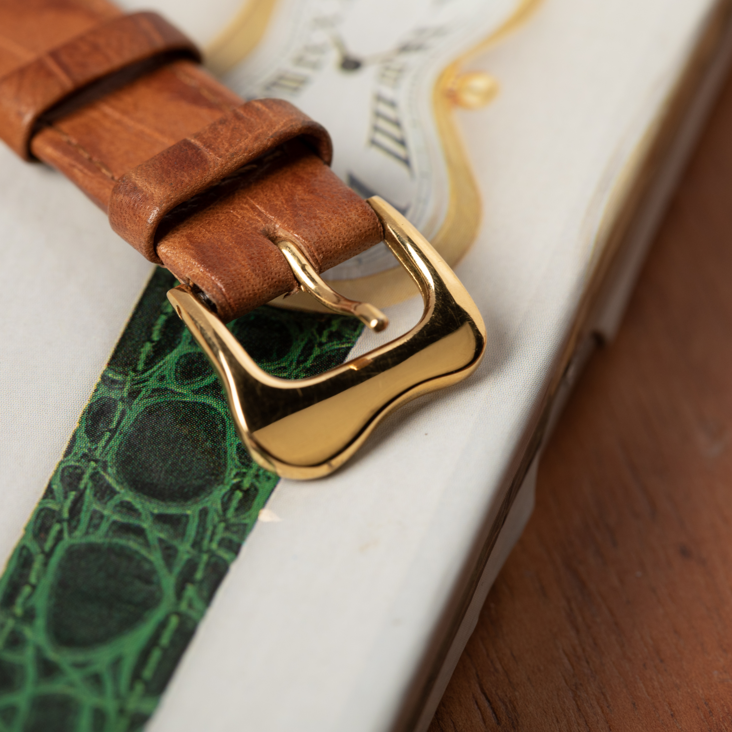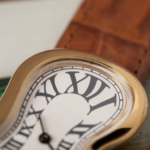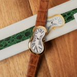 – Sculptural curved case and dial symbolizing time’s fluid, surreal nature