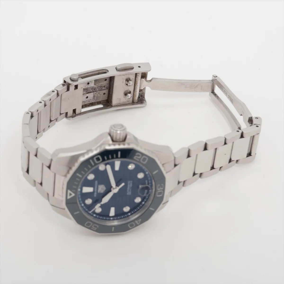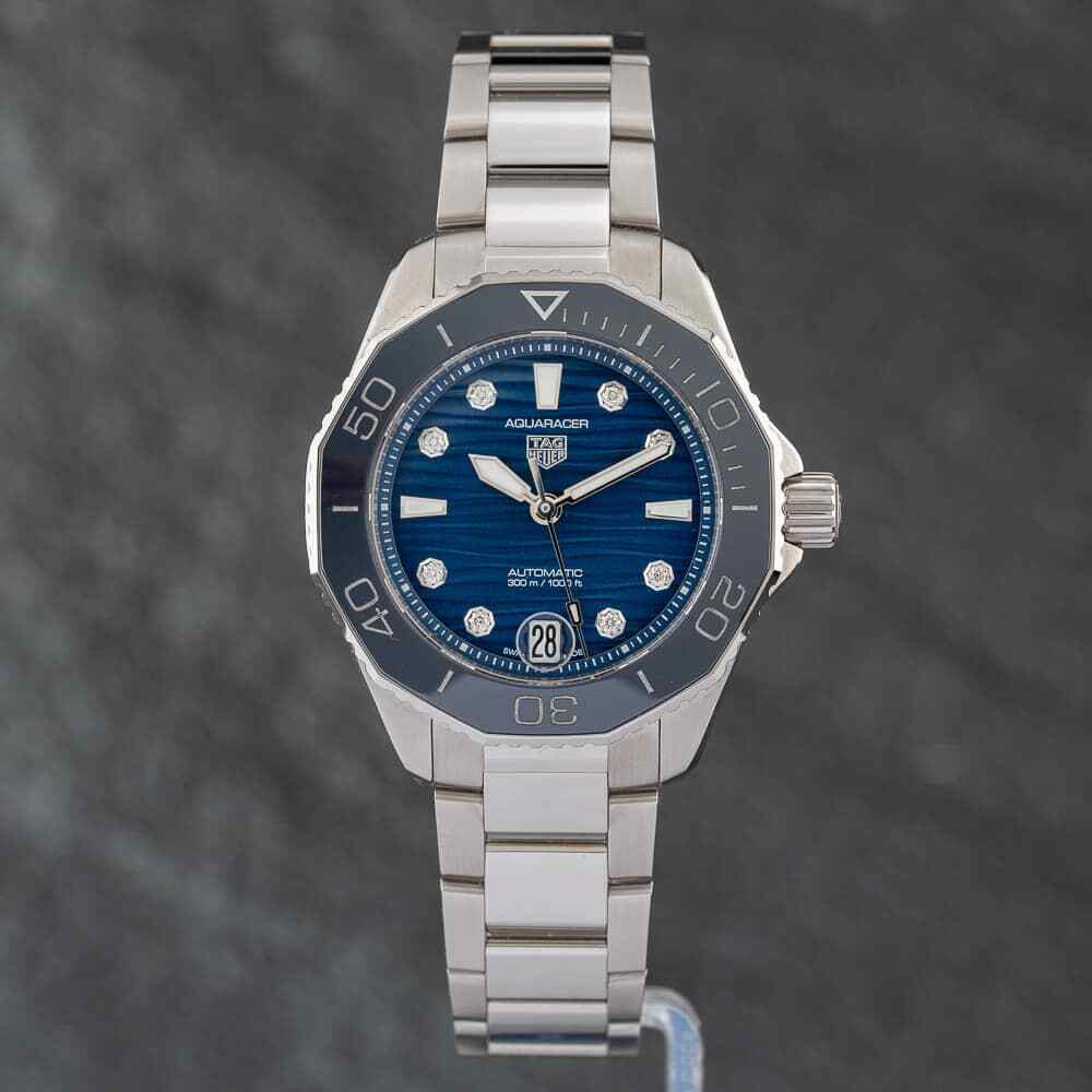 Built to withstand the most demanding aquatic environments, the Aquaracer features a highly durable, unidirectional rotating black ceramic bezel with a 60-minute scale—an essential safety feature for divers. The watch is powered by the reliable TAG Heuer Calibre 5 automatic movement, visible through the sapphire case back on some variations (please check specific listing details), ensuring precision and a consistent power reserve. The fine-brushed stainless steel H-link bracelet and secure folding clasp complete this resilient and beautiful luxury dive instrument.