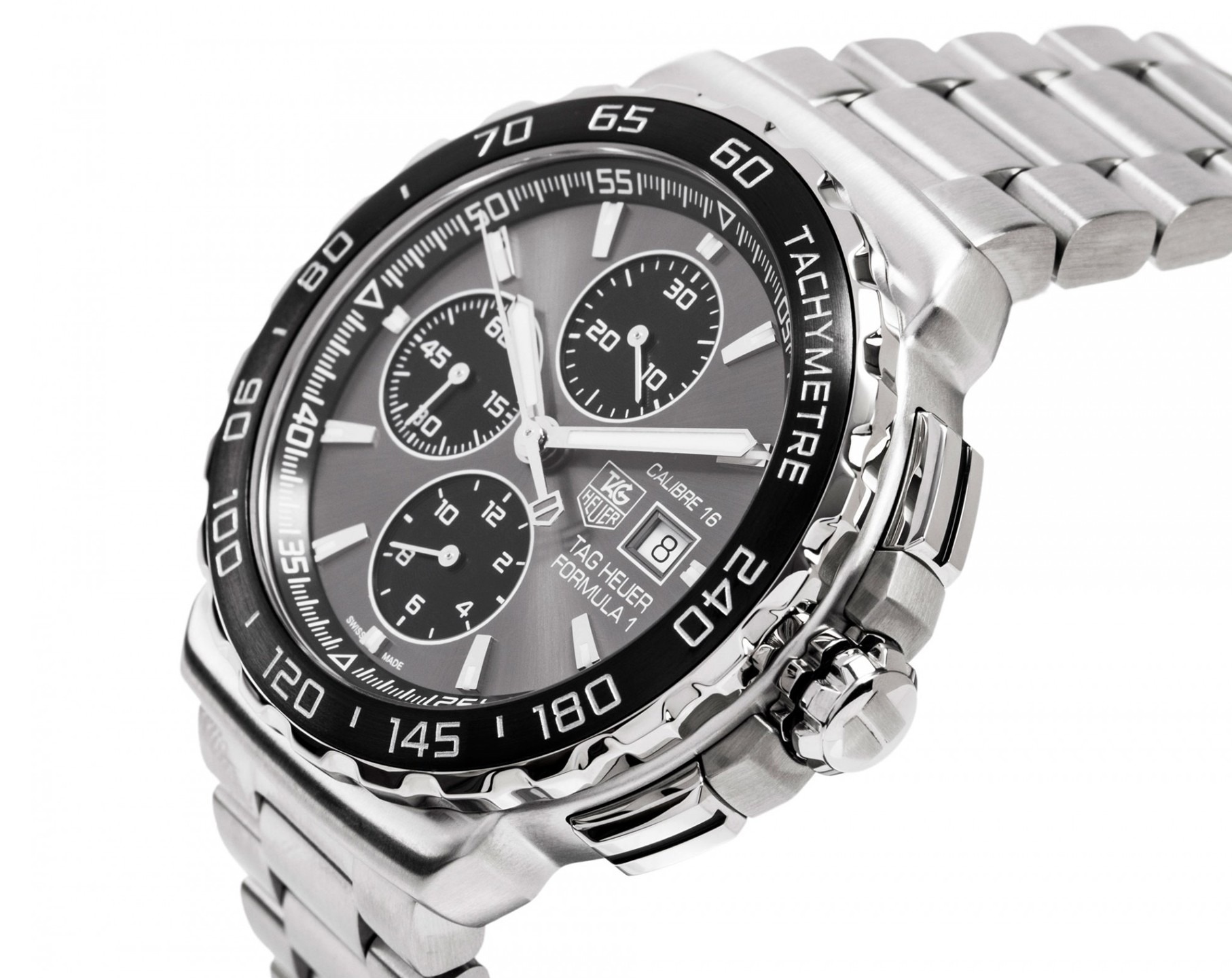 The TAG Heuer Formula 1 Calibre 16 (Ref. CAU2010) is a high-performance 44mm automatic chronograph that bridges the gap between racing heritage and modern luxury. Featuring a sleek anthracite sunray dial, a fixed black ceramic tachymeter bezel, and a robust 200m water resistance, this timepiece is engineered for precision and durability.