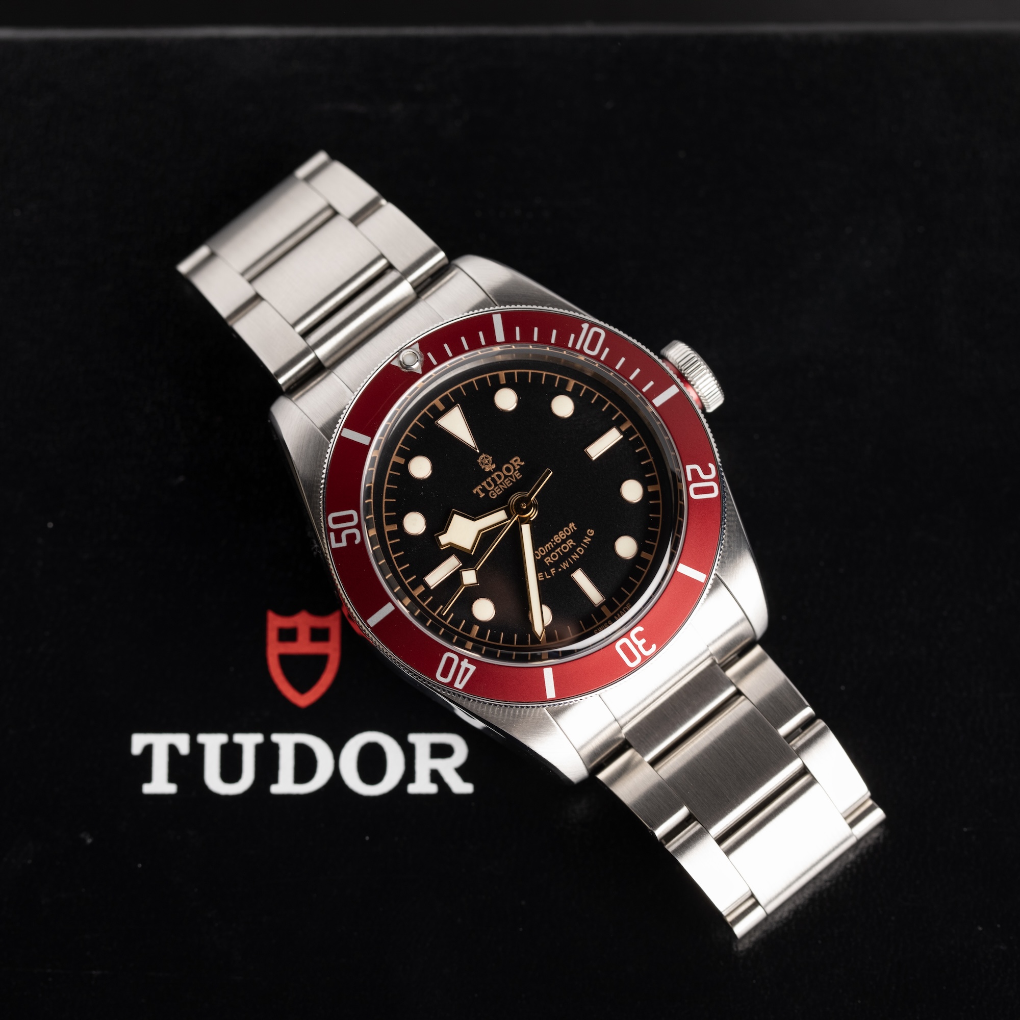 The Tudor Black Bay Heritage M79220 features a 41 mm stainless steel case, domed dial, snowflake hands, and unidirectional bezel. Powered by a dependable automatic movement and water-resistant to 200 meters, it blends vintage Tudor dive heritage with modern durability and everyday versatility.