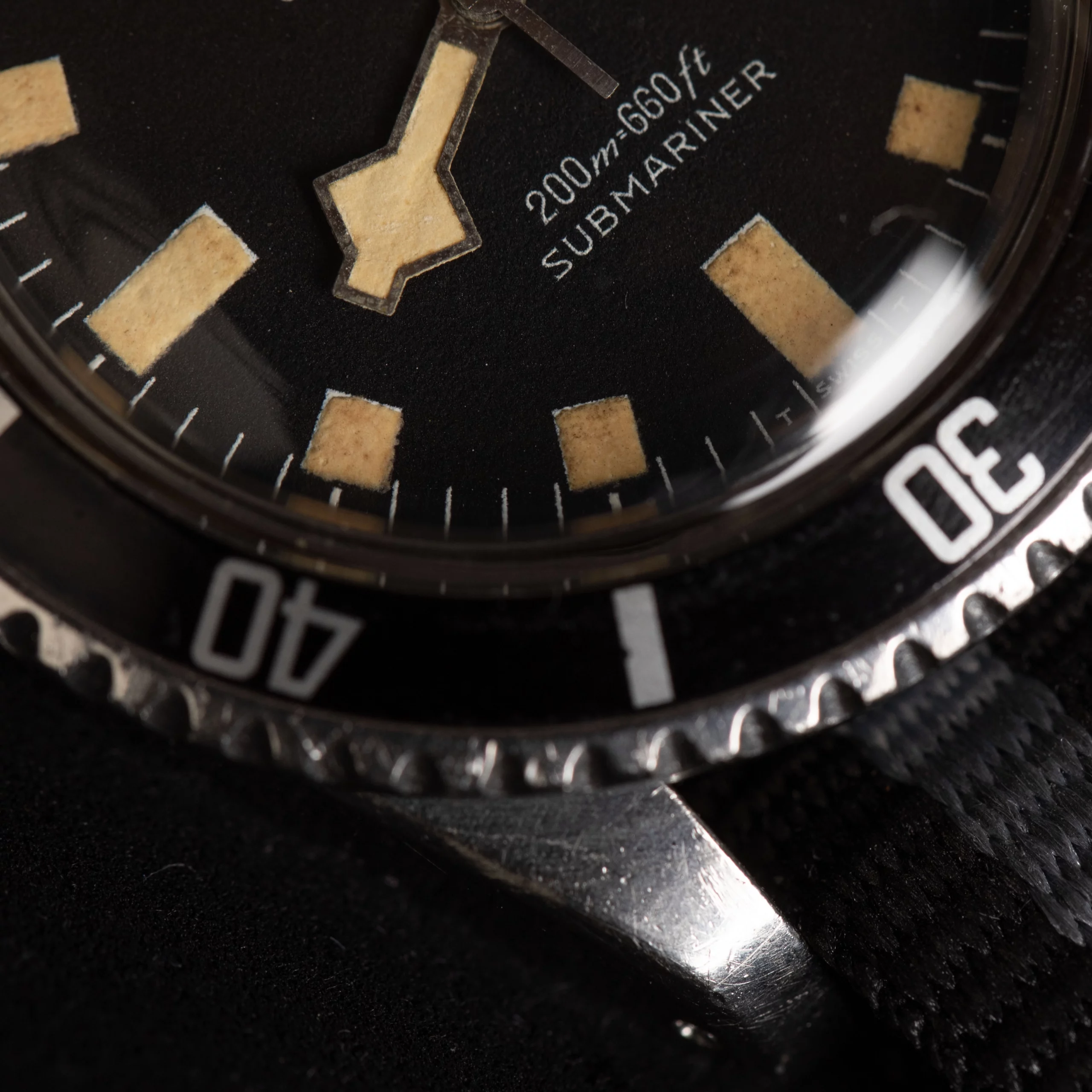 The Tudor Submariner 7016/0 is a highly collectible vintage dive watch, featuring a stainless steel case, a black dial with luminous markers, and a rugged NATO strap for a classic military-inspired look. With a robust automatic movement and 200-meter water resistance, this timepiece embodies the heritage and durability of Tudor’s legendary Submariner line.